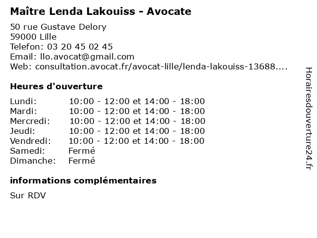 | Lundi | 10:00-12:00 et 14:00-18:00 |