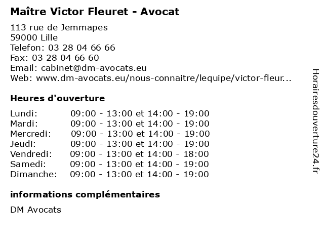 | Lundi | 09:00-13:00 et 14:00-19:00 |