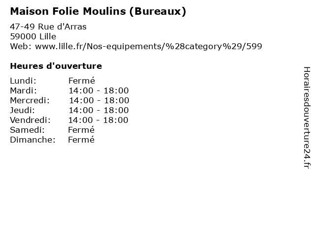 | Mercredi | 14:00-18:00 |