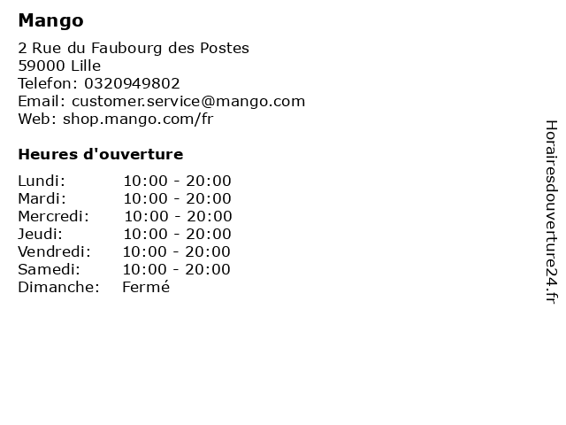1 Mango (Distance: 2,47 km) 15-17 rue de Béthune, 59800 Lille accessoires pour femme, mango, mode, prêt à porter 2 Mango (Distance: 3,09 km) 100 Avenue Willy Brandt, 59777 Lille accessoires, mango, mode, prêt-à-porter, vêtements 4 Mango (Distance: 6,25 km) 100 Centre Commercial, 59777 Lille enfants, femme, jeans, mango, mode, pantalons, tendances, vetements 5 Mango (Distance: 7,24 km) 2 Villeneuuve, 59650 Villeneuve D'Ascq beaute, boutiques, brasserie, cache, chaussures, concorde, deco, enfants, mango, mode femme, mode hommes, restaurant, sport 6 Mango (Distance: 9,36 km) . Avenue du Grand Cottignies, 59290 Wasquehal boutique, enfant, femme, habillement, mango, mode |