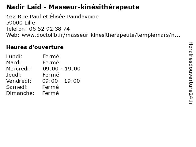 | Lundi | Fermé |