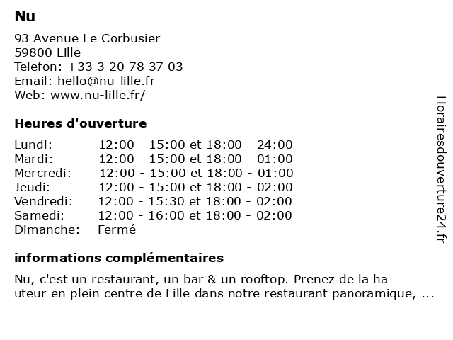 Mercredi | 12:00-15:00 et 18:00-01:00 |