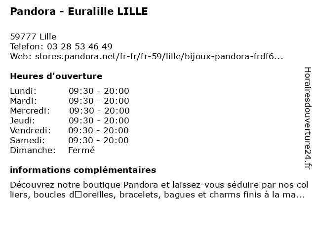 Termes de recherche pour Pandora - Euralille LILLE:lille, bijouterie, pandora, euralille |