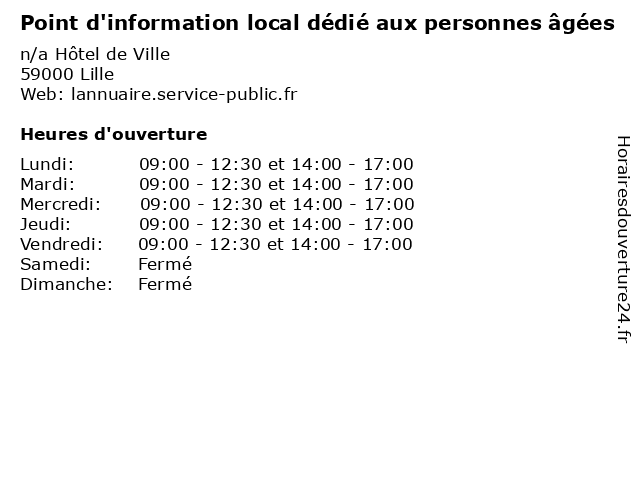 | Mardi | 09:00-12:30 et 14:00-17:00 |