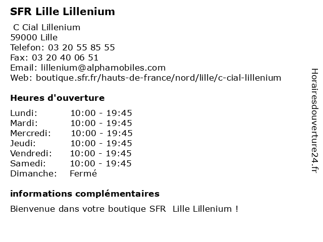 Termes de recherche pour SFR Lille Lillenium:lille, sfr, lillenium, compagnie de téléphone, vente et installation du câble et du satellite, magasin de téléphones mobiles |