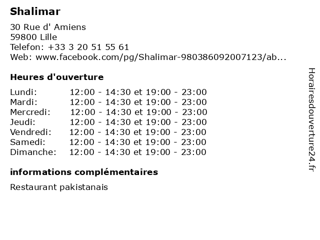 | Dimanche | 12:00-14:30 et 19:00-23:00 |