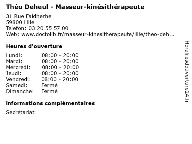 1 Théo Daval - Psychologue TCC (Distance: 0,69 km) 153 Boulevard de la Liberté, 59800 Lille daval, psy lille, psychologue, psychologue lille, psychologue tcc lille, tcc, théo, théo daval 2 Théo Bertrand - Diététicien (Distance: 2,46 km) 42 Rue Pasteur, 59350 Saint-André-lez-Lille aliment, bertrand, dieticien, diététicien, medecin, nutrition, théo 3 Théo Fovelle - Masseur-kinésithérapeute (Distance: 4,91 km) 212 Rue Clemenceau, 59139 Wattignies docteur, fovelle, kine, kinesitherapeute, kinésithérapeute, masseur, théo 4 Dr Théo Honorez - Chirurgien-dentiste (Distance: 10,49 km) 5-78 Rue des Francs, 59200 Tourcoing chirurgien, consultation, dentiste, docteur, dr, honorez, med, médecin, médecine, secrétariat, théo, traitement 5 Dr Théo Duflot - Andrologue (Distance: 14,30 km) 155 Rue du Président Coty, 59200 Tourcoing andrologue, consultation, docteur, dr, duflot, med, médecin, théo, traitement 6 Théo Ultré - Masseur-kinésithérapeute (Distance: 16,19 km) 10 Rue des Glattignies, 62840 Fleurbaix kiné, kinésithérapeute, masseur, rééducation, soin1, théo, ultré |