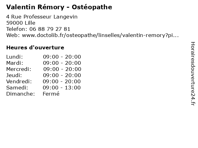 1 Valentin Fournier - Masseur-kinésithérapeute (Distance: 1,83 km) 51 Rue Marcel Hénaux, 59000 Lille fournier, kiné, kinésithérapeute, masseur, rééducation, soin, valentin 2 Valentin Coiffeur (Distance: 2,50 km) 103 rue Léon Gambetta, 59000 Lille beauté, coiffeur, coiffure, coiffures, coloristes, valentin 3 Valentin Duriez - Masseur-kinésithérapeute (Distance: 2,60 km) 31 Rue Faidherbe, 59800 Lille consultation, docteur, duriez, kinésithérapeute, masseur, med, médecin, médecine, traitement, valentin 4 Jardin D'Enfants "Valentin" (Distance: 3,07 km) 8 Rue des Victoires, 59650 Villeneuve-d'Ascq "valentin", caregivers houses, child care, d'enfants, family home, home care, jardin, kindergartens, micro-nurseries, parental home 5 Comité Valentin Haüy (Distance: 3,22 km) 75 boulevard Vauban, 59000 Lille braille, comité, haüy, magasin, malvoyants, matériel, téléphone, valentin 6 Dr François Valentin - Médecin Généraliste (Distance: 3,32 km) 5 Rue Edouard Vaillant, 59155 Faches-Thumesnil consultation, docteur, dr, françois, généraliste, médecin, médecine, secrétariat, traitement, valentin |