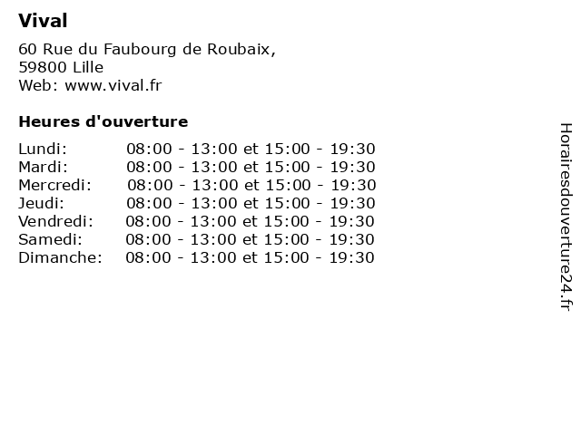 | Mardi | 08:00-13:00 et 15:00-19:30 |