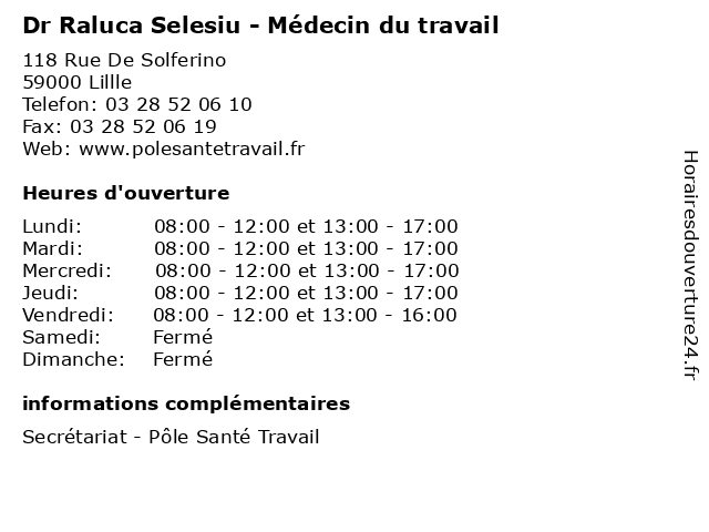| Lundi | 08:00-12:00 et 13:00-17:00 |