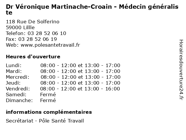 1 Dr Véronique Loire-Degrendele - Médecin généraliste (Distance: 0,00 km) 118 Rue De Solferino, 59000 Lillle consultation, degrendele, docteur, dr, généraliste, loire, med, médecin, traitement, veronique, véronique 2 Dr Véronique Herlant - Médecin du travail (Distance: 0,00 km) 118 Rue De Solferino, 59000 Lillle consultation, docteur, dr, du, herlant, med, médecin, traitement, travail, veronique, véronique 3 Dr Véronique Chevet - Médecin du travail (Distance: 0,00 km) 118 Rue De Solferino, 59000 Lillle chevet, consultation, docteur, dr, du, med, médecin, traitement, travail, veronique, véronique 4 Véronique Henning - Psychologue (Distance: 0,29 km) 117 Rue Jacquemars Giélée, 59800 Lille folie, henning, psychiatre, psychiatrie, psychiatrique, psychologue, véronique 5 Maître Véronique Ducloy - Avocate (Distance: 0,38 km) 30 Boulevard Vauban, 59000 Lille avocate, avocats, civils, droits, ducloy, juridiques, maître, véronique 6 Atelier du Bien-être - Véronique Taiana (Distance: 0,72 km) 21 Rue du Nouveau Siècle, 59800 Lille atelier, bien, bien-entre, du, massages, relaxation, santé, taiana, thérapies, véronique, être |