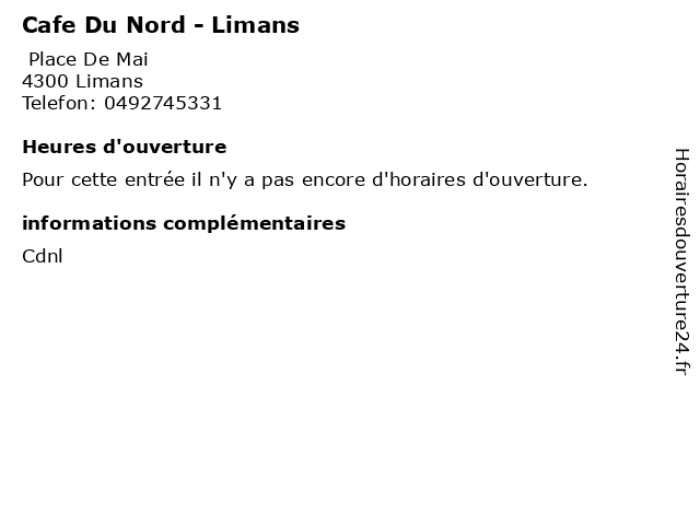 | Appeler Cafe Du Nord - Limans | |