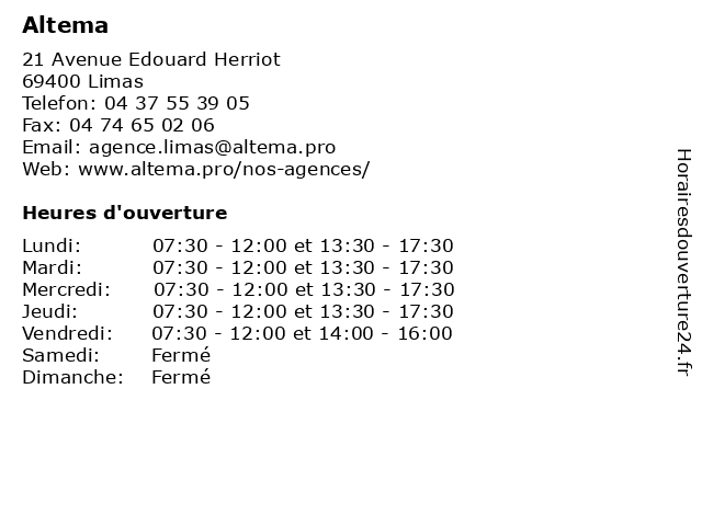 | Lundi | 07:30-12:00 et 13:30-17:30 |