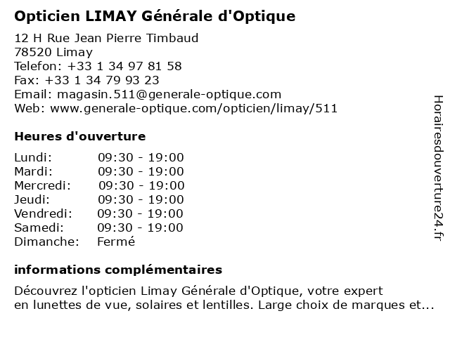 1 Générale d’Optique (Distance: 0,02 km) 12 H Rue Jean-Pierre Timbaud, 78520 Limay d’optique, générale, lentilles de contact, lunettes, optic, opticien, optique, solaire, vision, vue 2 Société Générale (Distance: 1,59 km) 35 Rue de paris, 78520 Limay association d'épargne et de crédit, atm, conseil en crédit, générale, organisme d'assurance auto, organisme d'assurance moto, organisme d'assurance-habitation, organisme d'assurance-vie, société 3 Opticien Mantes-la-Jolie - Optic 2000 (Distance: 2,49 km) 34 Rue Nationale, 78200 Mantes-la-Jolie 2000, jolie, la, lentilles de contact, lunettes de soleil, lunettes de vue, mantes, optic, optic2000, opticien, opticien optic2000, ray-ban, rayban 4 Opticien Générale d'Optique MANTES LA JOLIE (Distance: 4,95 km) Rue de l'Ouest, 78200 Buchelay d'optique, générale, jolie, la, mantes, opticien 5 Opticien Mobile - Mantes-la-Jolie Optical Center (Distance: 4,73 km) Centre commercial Porte de Normandie, 78200 Mantes la jolie center, jolie, la, mantes, mobile, optical, opticien 6 Opticien BUCHELAY Générale d'Optique (Distance: 5,86 km) 2 Avenue Du Bearn, 78200 Buchelay buchelay, d'optique, examen de la vue, générale, lentilles de contact, lentilles progressives, lunette ray ban, lunettes, lunettes anti-lumière bleue, lunettes de conduite de nuit, lunettes de conduites de nuit, lunettes de soleil, lunettes de soleil pour enfant, lunettes de soleil pour femme, lunettes de soleil pour homme, lunettes de vue, lunettes de vue femme, lunettes de vue homme, lunettes progressives, opticien, opticien proche de chez moi, optique, sport à la vue, vérification de la vue |