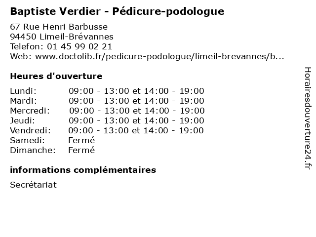 | Lundi | 09:00-13:00 et 14:00-19:00 |