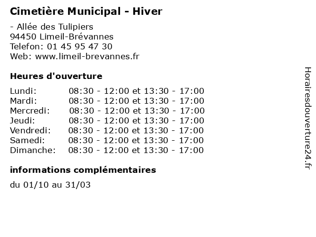 | Lundi | 08:30-12:00 et 13:30-17:00 |