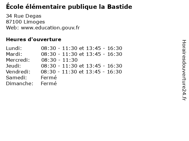 | Mardi | 08:30-11:30 et 13:45-16:30 |