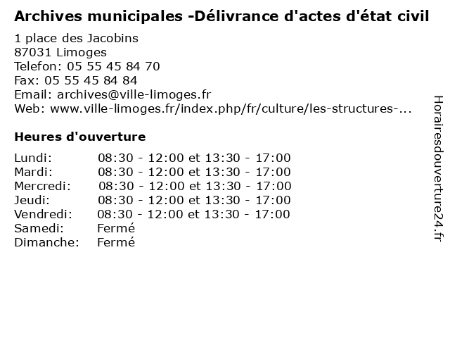 | Lundi | 08:30-12:00 et 13:30-17:00 |