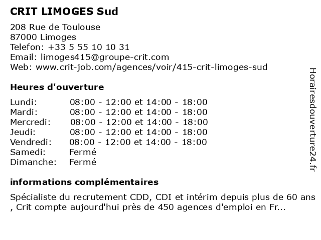 | Termes de recherche pour CRIT LIMOGES Sud:limoges, sud, crit |