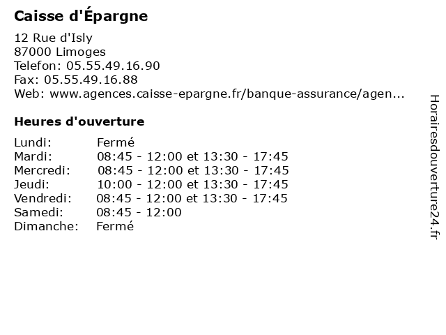 1 Caisse d'Épargne (Distance: 0,75 km) 5 Boulevard Gambetta,, 87000 Limoges banque, caisse, carte, d'epargne, d'épargne, services 2 Caisse d'Épargne (Distance: 0,94 km) 5 Avenue Emile Labussière, 87100 Limoges banque, caisse, carte, d'epargne, d'Épargne, d'épargne, services 3 Caisse d'Épargne (Distance: 1,07 km) 12 Avenue de Lattre-de-Tassigny, 87000 Limoges banque, caisse, carte, d'epargne, d'Épargne, d'épargne, services 4 Caisse d'Épargne (Distance: 1,09 km) 23 Place des Carmes, 87000 Limoges banque, caisse, carte, d'epargne, d'Épargne, d'épargne, services 5 Caisse d'Épargne (Distance: 2,23 km) 28 Boulevard du Vigenal, 87100 Limoges banque, caisse, carte, d'epargne, d'Épargne, d'épargne, services 6 Caisse d'Épargne (Distance: 2,82 km) 276 Rue François Perrin, 87000 Limoges banque, caisse, carte, d'epargne, d'Épargne, d'épargne, services |