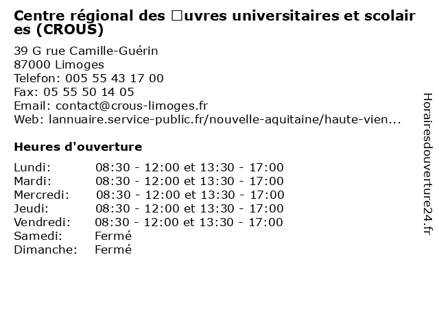 | Lundi | 08:30-12:00 et 13:30-17:00 |