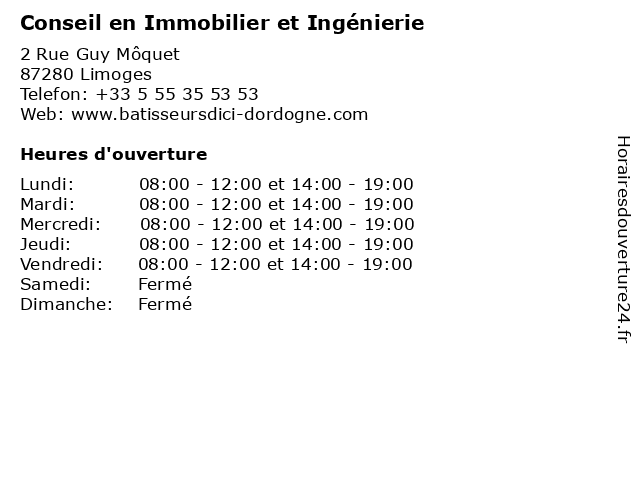 | Lundi | 08:00-12:00 et 14:00-19:00 |