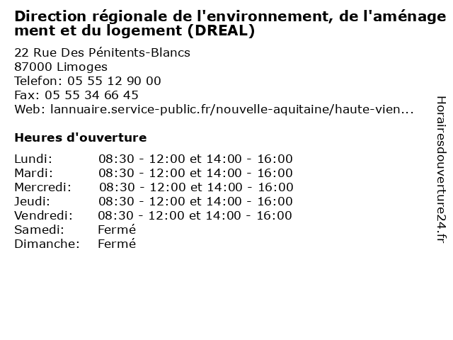 1 Direction régionale de l'environnement, de l'aménagement et du logement (DREAL) (Distance: 0,14 km) 15 place Jourdan, 87000 Limoges administration, assoc, de, direction, dreal, du, et, l'aménagement, l'environnement, logement, régionale, services, services publics, territoriale, unité 2 Direction Départementale des Territoires (DDT) (Distance: 0,04 km) 22 Rue des Pénitents-Blancs, 87032 Limoges administration, assoc, ddt, des, direction, départementale, services, services publics, territoires 3 Union Régionale des Scop et Scic du Limousin (Distance: 0,34 km) 23 Avenue du Général de Gaulle, 87000 Limoges aides, association, coopérative, coopératives, des, du, et, limousin, production, régionale, scic, scop, sociétés, union 4 Agence régionale de santé (ARS) - Délégation départementale - Haute-Vienne (Distance: 0,37 km) 24 rue Donzelot, 87031 Limoges administration, agence, ars, de, délégation, départementale, haute, organismes, publics, régionale, santé, services, vienne 5 Agence Action Logement LIMOGES (Distance: 0,49 km) 7 Rue Jules Guesde, 87000 Limoges action, agence, limoges, logement 6 Agence départementale d'information sur le logement (ADIL) (Distance: 0,60 km) 28 avenue de la Libération, 87000 Limoges adil, administration, agence, assoc, d'information, départementale, le, logement, services, services publics, sur |