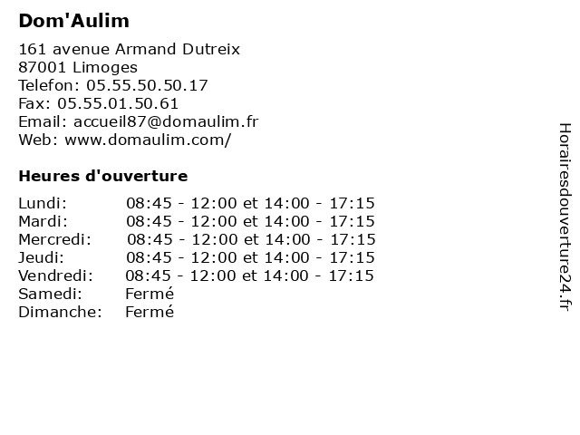 | Lundi | 08:45-12:00 et 14:00-17:15 |