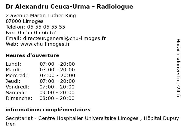 1 Dr Mathilde Casson-Masselin - Radiologue (Distance: 0,00 km) 2 avenue Martin-Luther-King, 87042 Limoges casson, consultation, docteur, dr, masselin, mathilde, med, médecin, médecine, radiologue, traitement 2 Dr Philippe Bouillet - Radiologue (Distance: 0,00 km) 2 avenue Martin-Luther-King, 87042 Limoges bouillet, consultation, docteur, dr, med, médecin, médecine, philippe, radiologue, traitement 3 Dr Isabelle Jammet - Radiologue (Distance: 0,00 km) 2 avenue Martin-Luther-King, 87042 Limoges consultation, docteur, dr, isabelle, jammet, med, médecin, médecine, radiologue, traitement 4 Dr Philippe de Souza - Radiologue (Distance: 0,00 km) 2 avenue Martin-Luther-King, 87042 Limoges consultation, de, docteur, dr, med, médecin, médecine, philippe, radiologue, souza, traitement 5 Dr Marie-Paule Boncoeur-Martel - Radiologue (Distance: 0,00 km) 2 avenue Martin Luther King, 87000 Limoges boncoeur, consultation, docteur, dr, marie, martel, med, médecin, paule, radiologue, traitement 6 Dr Aymeric Rouchaud - Radiologue (Distance: 0,00 km) 2 avenue Martin Luther King, 87000 Limoges aymeric, consultation, docteur, dr, med, médecin, radiologue, rouchaud, traitement |