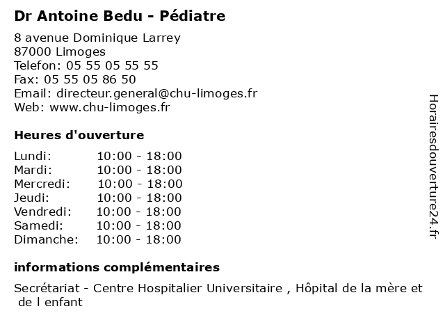 1 Dr Jeanne Languepin-Bedu - Pédiatre (Distance: 0,00 km) 8 avenue Dominique Larrey, 87000 Limoges bedu, consultation, docteur, dr, jeanne, languepin, med, médecin, pédiatre, traitement 2 Dr Philippe Brosset - Pédiatre (Distance: 0,00 km) 8 avenue Dominique Larrey, 87000 Limoges brosset, consultation, docteur, dr, med, médecin, philippe, pédiatre, traitement 3 Dr Julien Crosse - Pédiatre (Distance: 0,00 km) 8 avenue Dominique Larrey, 87000 Limoges consultation, crosse, docteur, dr, julien, med, médecin, pédiatre, traitement 4 Dr Aymeric Dallocchio - Pédiatre (Distance: 0,00 km) 8 avenue Dominique Larrey, 87000 Limoges aymeric, consultation, dallocchio, docteur, dr, med, médecin, pédiatre, traitement 5 Dr Marie Domelier - Pédiatre (Distance: 0,00 km) 8 avenue Dominique Larrey, 87000 Limoges consultation, docteur, domelier, dr, marie, med, médecin, pédiatre, traitement 6 Dr Pauline Hangard - Pédiatre (Distance: 0,00 km) 8 avenue Dominique Larrey, 87000 Limoges consultation, docteur, dr, hangard, med, médecin, pauline, pédiatre, traitement |