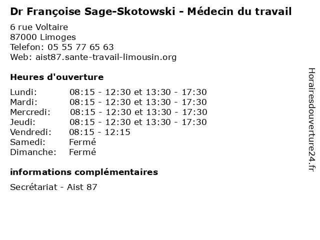 Termes de recherche pour Dr Françoise Sage-Skotowski - Médecin du travail:du, med, travail, sage, francoise, traitement, docteur, médecin, consultation, dr, skotowski |