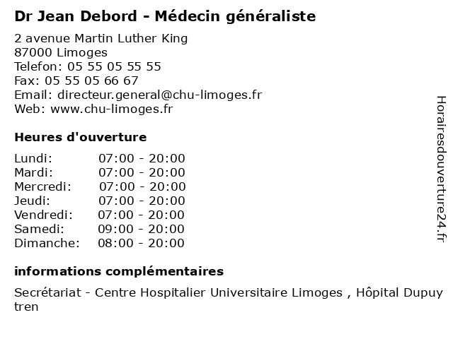 | Vendredi | 07:00-20:00 |