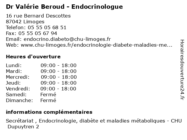 1 Dr Anne Drutel - Endocrinologue (Distance: 0,00 km) 16 rue Bernard Descottes, 87042 Limoges anne, consultation, docteur, dr, drutel, endocrinologue, med, médecin, médecine, traitement 2 Dr Sophie Galinat - Endocrinologue (Distance: 0,00 km) 16 rue Bernard Descottes, 87042 Limoges consultation, docteur, dr, endocrinologue, galinat, med, médecin, médecine, sophie, traitement 3 Dr Sophie Lecoeur-Fourcade - Endocrinologue (Distance: 0,00 km) 16 rue Bernard Descottes, 87042 Limoges consultation, docteur, dr, endocrinologue, fourcade, lecoeur, med, médecin, médecine, sophie, traitement 4 Dr Geneviève Mace - Endocrinologue (Distance: 0,00 km) 16 rue Bernard Descottes, 87042 Limoges consultation, docteur, dr, endocrinologue, genevieve, geneviève, mace, med, médecin, médecine, traitement 5 Dr Sylvie Nadalon - Endocrinologue (Distance: 0,00 km) 16 rue Bernard Descottes, 87042 Limoges consultation, docteur, dr, endocrinologue, med, médecin, médecine, nadalon, sylvie, traitement 6 Dr Sika Nassouri - Endocrinologue (Distance: 0,00 km) 16 rue Bernard Descottes, 87042 Limoges consultation, docteur, dr, endocrinologue, med, médecin, médecine, nassouri, sika, traitement |