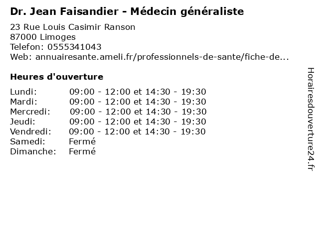 | Lundi | 09:00-12:00 et 14:30-19:30 |