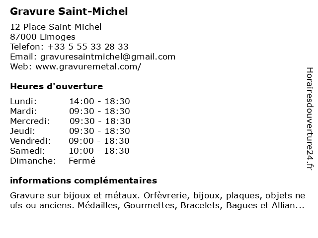| Samedi | 10:00-18:30 |