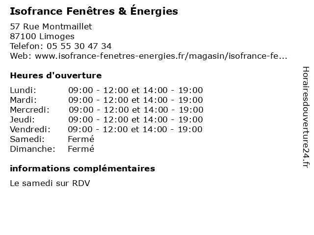 | Mardi | 09:00-12:00 et 14:00-19:00 |