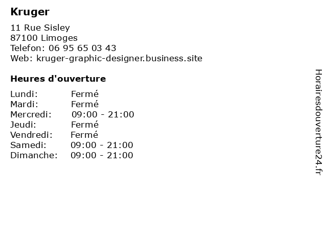 | Dimanche | 09:00-21:00 |