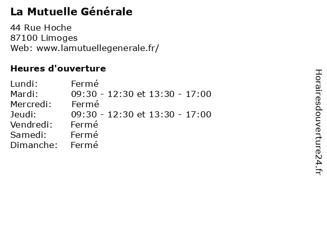 | Mardi | 09:30-12:30 et 13:30-17:00 |