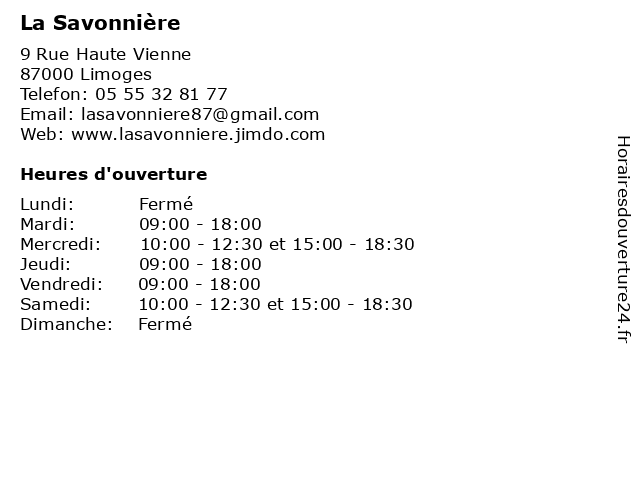 | Samedi | 10:00-12:30 et 15:00-18:30 |
