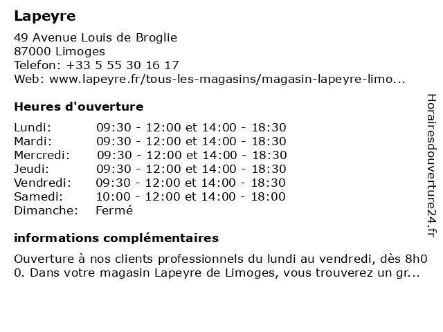 1 Lapeyre (Distance: 8,81 km) . Ponteix, 87222 Feytiat Cedex accessories, bains, cuisines, lapeyre, muebles 2 Lapeyre "Drive" (Distance: 8,81 km) - Du Ponteix, 87220 Feytiat "drive", chaîne, lapeyre, salles de bains et l'aménagement intérieur et extérieur de la maison, spécialisée dans les cuisines |