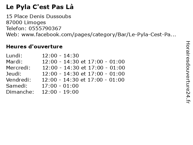 | Mardi | 12:00-14:30 et 17:00-01:00 |