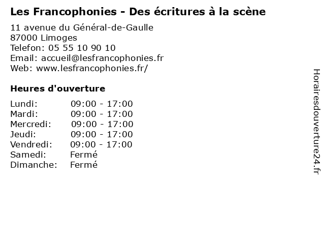 | Lundi | 09:00-17:00 |