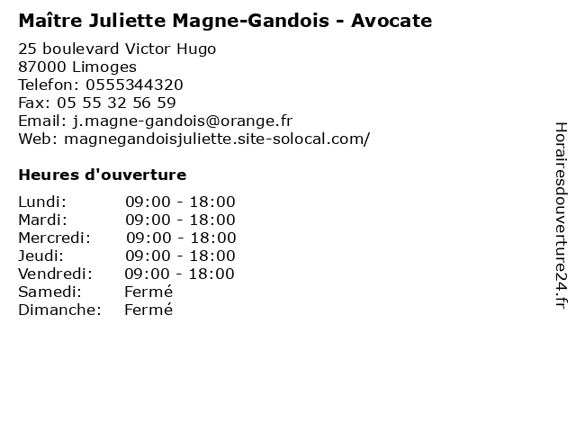 1 Magne-gandois Juliette (Distance: 0,21 km) 25 Boulevard Victor Hugo, 87000 Limoges gandois, juliette, magne 3 Gandois Maurette Isabelle (Distance: 0,34 km) 1 Rue du Général Cerez, 87000 Limoges gandois, isabelle, maurette 4 Dr Juliette Todeschi - Pédiatre (Distance: 17,81 km) 17 Rue Louis Jouvet, 87800 Nexon dr, enfant, juliette, medecin, pediatre, pédiatre, soins, todeschi 5 Maître Philippe Pauliat-Defaye - Avocat (Distance: 0,00 km) 25 Boulevard Victor Hugo, 87000 Limoges avocat, avocate, avocats, civils, defaye, droits, juridiques, maître, pauliat, philippe 6 Maître Laurent Boucherle - Avocat (Distance: 0,00 km) 25 Boulevard Victor Hugo, 87000 Limoges avocat, avocate, avocats, boucherle, civils, droits, juridiques, laurent, maître |