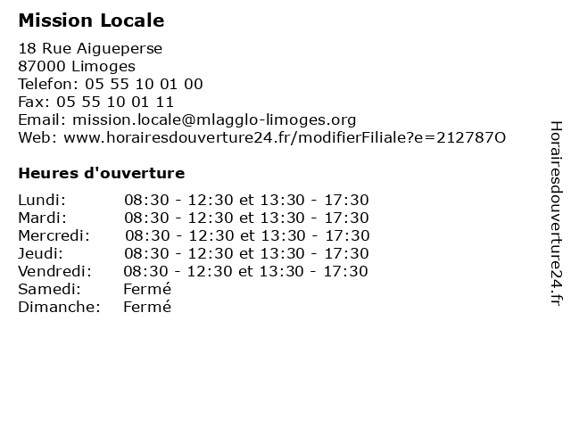 1 Mission Locale (Distance: 2,06 km) 31 Rue Marcel Vardelle, 87000 Limoges insertion, jeunes, limoges, locale, mission, professionnelle 2 Mission Locale (Distance: 2,09 km) 3 Rue Gauguin, 87000 Limoges insertion, jeunes, limoges, locale, mission, professionnelle 3 Mission Locale (Distance: 2,19 km) 29 Rue des portes Ferrées, 87000 Limoges administration, assoc, locale, mission, services, services publics 4 Mission Locale (Distance: 5,77 km) 6 Allée Marcel-Proust, 87280 Limoges insertion, jeunes, limoges, locale, mission, professionnelle 5 Mission Locale (Distance: 11,07 km) 8 avenue François-Miterrand, 87700 Aixe-sur-Vienne aixe-sur-vienne, insertion, jeunes, locale, mission, professionnelle 6 Mission Locale (Distance: 13,85 km) . Le Bourg, 05470 Aiguilles administration, assoc, locale, mission, services, services publics |