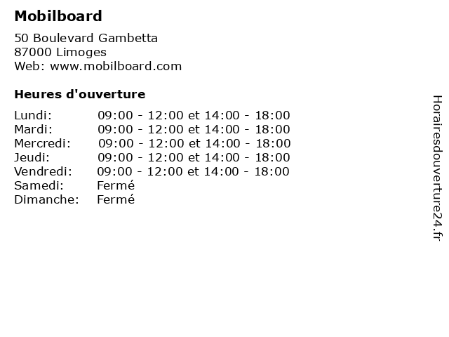 | Mercredi | 09:00-12:00 et 14:00-18:00 |