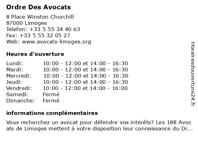 1 Société D'avocats Demosthene (Distance: 0,12 km) 17 Place Winston Churchill, 87000 Limoges d'avocats, demosthene, société 3 Lexavoué - Société d'Avocats (Distance: 0,19 km) 25 Boulevard Victor Hugo, 87000 Limoges avocats, civils, d'avocats, droits, juridiques, lexavoue, lexavoué, societe, société 5 La Maison du Chiffre - Ordre des Experts-comptables (Distance: 0,59 km) 25 rue Cruveilhier, 87000 Limoges accompagnement, chiffre, comptabilité, comptables, des, du, experts, la, maison, métier, ordre, professionel, étudiant 6 Conseil départemental de la Haute Vienne de l'Ordre des médecins (Distance: 0,64 km) 19 Rue Cruveilhier, 87000 Limoges conseil, de, des, départemental, haute, l'ordre, la, médecins, ordre, vienne |