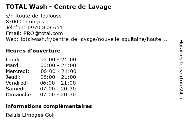 | Lundi | 06:00-21:00 |