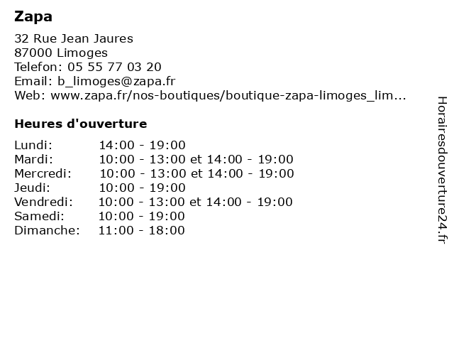 | Mardi | 10:00-13:00 et 14:00-19:00 |