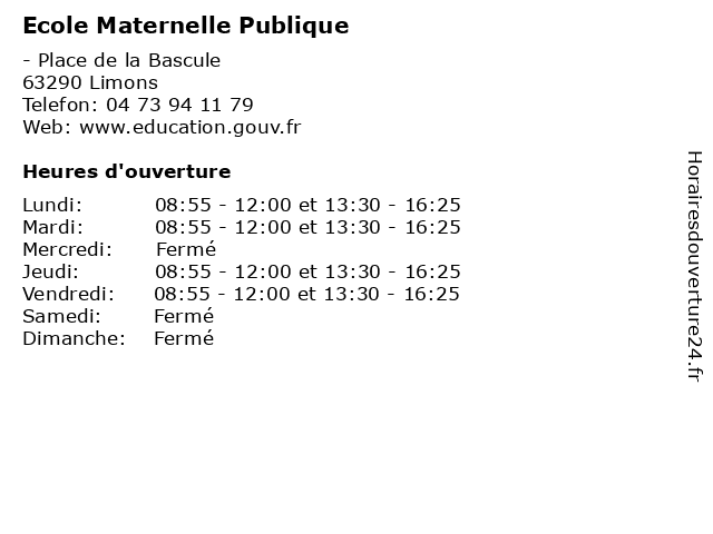 Lundi | 08:55-12:00 et 13:30-16:25 |