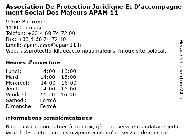 Termes de recherche pour Association De Protection Juridique Et D'accompagnement Social Des Majeurs APAM 11:et, de, des, social, protection, 11, association, juridique, majeurs, d'accompagnement, apam |